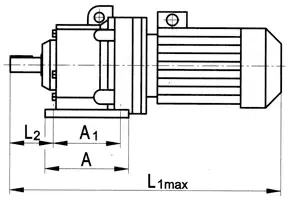 Двоступеневий мотор-редуктор поєднує в собі планетарний редуктор із двома ступенями передач і асинхронний електричний мотор.