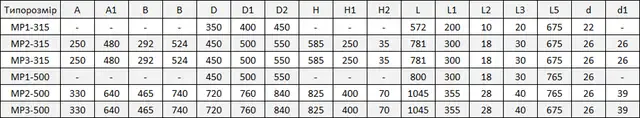 | Умовне позначення | Тип електроприводів мотор-редукторов МР | |||||||||
