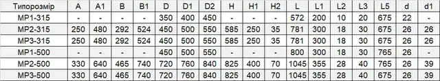 | МР1-315 | 100 | 150 | 180 | 16 | 4 | 20 | 4 |