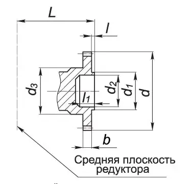 | Редуктор | b | d | d1 | d2 | d3 | L | l | l1 | Зачеплення | |