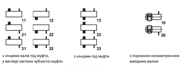 Приєднувальні розміри валів редуктора, мм.