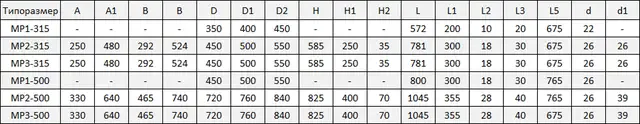 | МР1-500-11-315 | Ф1П | 4,6 | 315 | 3920 | 6 000 | 450 | 1300 | АИР280М4 | 132 | 1850 |
